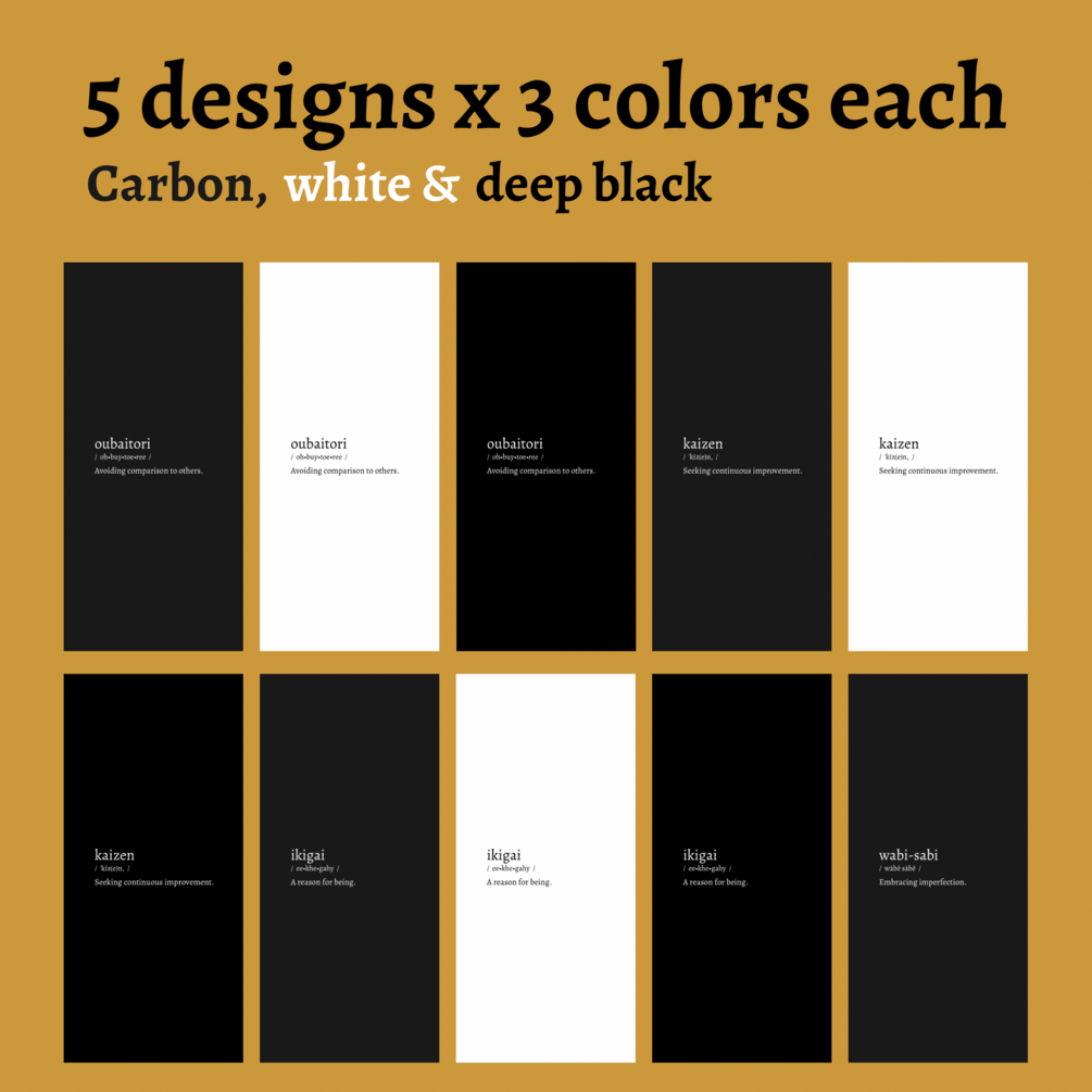 Pack of 5 wallpapers, each available in 3 colors (carbon, white, and deep black). 🎨